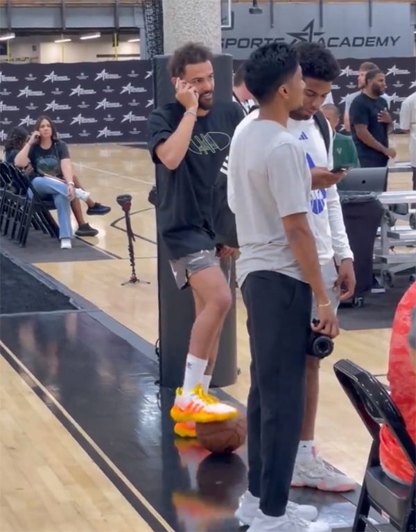 老鹰和鹈鹕达成交易后,现身米切尔训练营的特雷-杨站在场边打电话,满脸笑容十分开心,很明显,他已经知道穆雷被交易了。