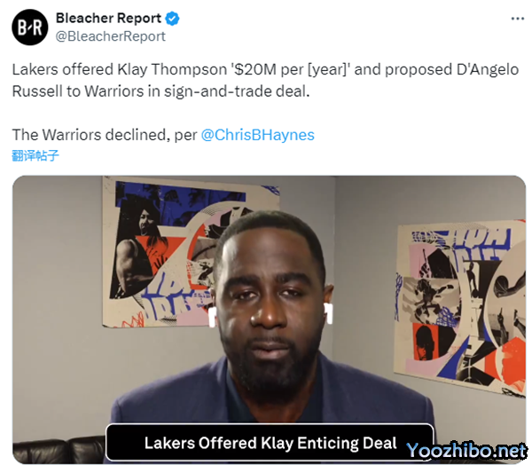 詹姆斯出面招募汤普森,并且愿意降薪2000万美元助湖人引援他,可最终湖人仍未能如愿;据名记Chris Haynes报道,湖人给克莱开出了均薪2000万美元的报价,想用拉塞尔和勇士签换克莱,但这样的交易方案被勇士拒绝了。