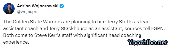 目前斯托茨即将成为勇士首席助教;据名记Woj报道,勇士计划聘请斯托茨和斯塔克豪斯担任助教,其中斯托茨为首席助教。