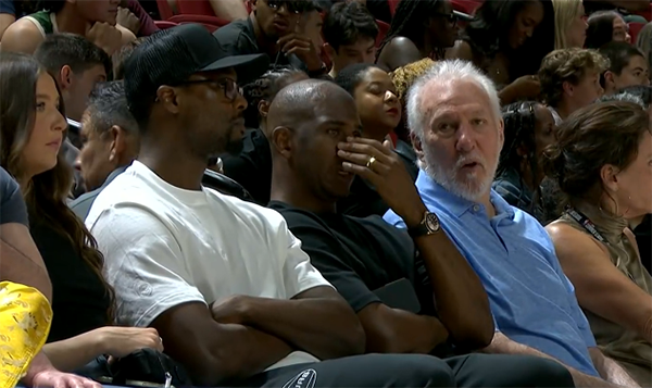 上半场,卡斯尔10投4中、三分5中2拿到10分3助攻1篮板,马刺主教练波波维奇与马刺新援保罗和巴恩斯都坐在场边观战,他们三人有说有笑太轻松。