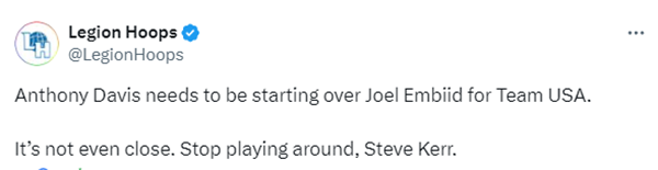 浓眉出色表现引热议,美媒直言浓眉应该取代恩比德成为美国男篮的首发球员,两人差距很大,科尔,别再开玩笑了。