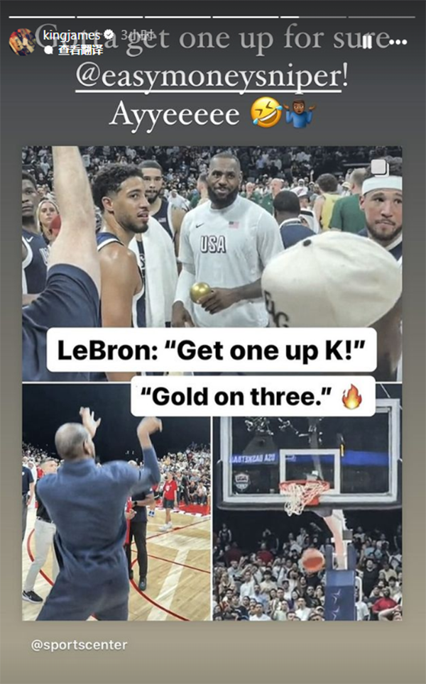 詹姆斯在社媒上转发视频并且调侃杜兰特:你必须投进一球才行;杜兰特回复:我给你搞定,6号。