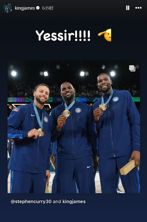 度假之余,詹姆斯转发库里的动态并配文:太棒了!(致敬表情);此前库里晒詹杜库夺得金牌合影,并写道:同一支球队,胜利之师。