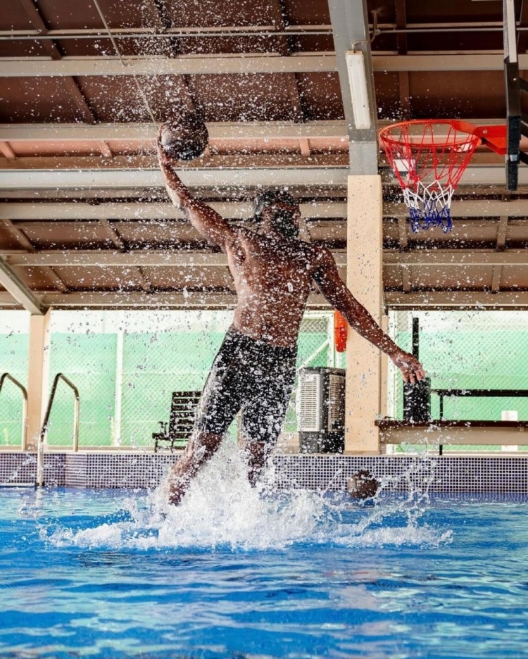最近一段时间,杰伦-布朗经常在水中训练——拿着哑铃在水中倒立以及运球,更是直接从水中腾起扣篮;很明显,布朗想要在新赛季打出更好的表现。