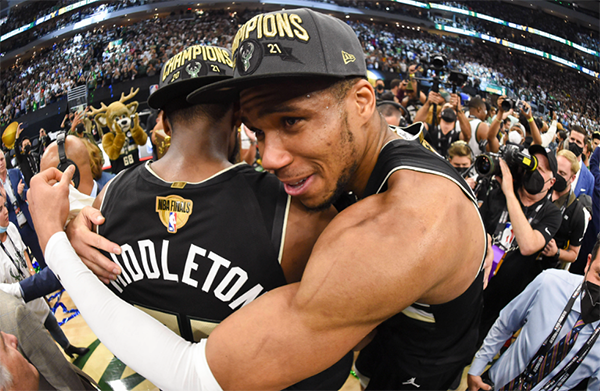字母哥和米德尔顿已经在雄鹿队当了10年的队友,2020-21赛季,他们带领雄鹿夺得总冠军,现在米德尔顿为字母担任伴郎,这说明他们的关系早已超越了篮球。