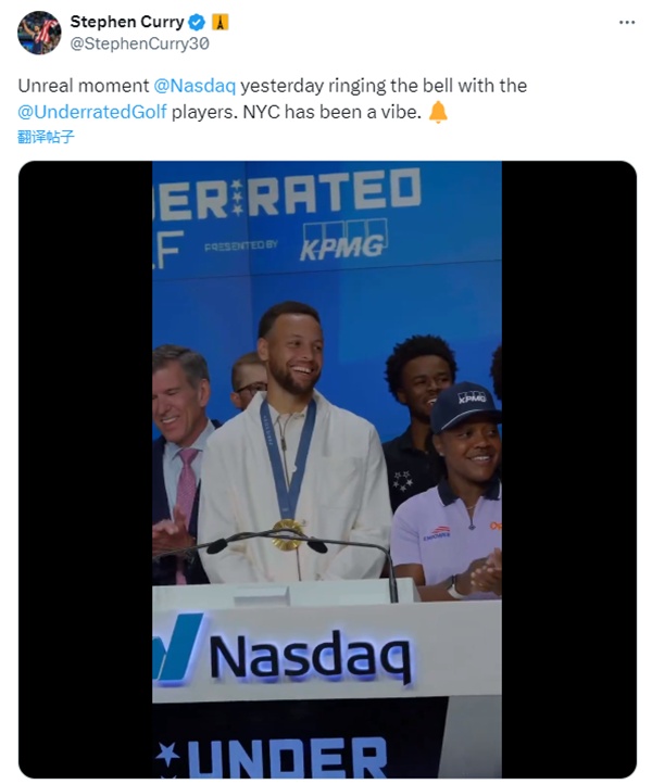 今日库里宣布一大喜讯,他的高尔夫赛事在纳斯达克敲钟了,库里晒视频并且配文写道:和球员们一起敲钟太不真实了。