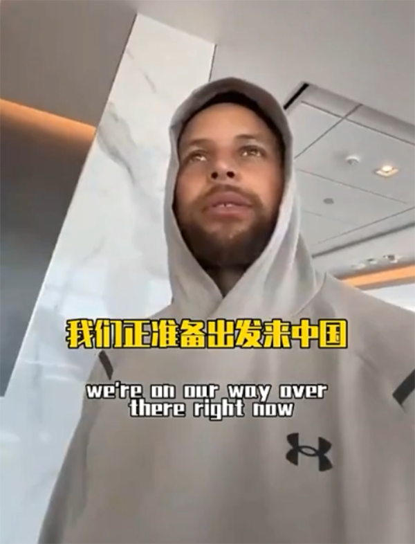 库里在登机前录视频向中国球迷问好,表示:怎么样,我中国的球迷我准备登机了。我们正准备出发来中国,期待几个小时后见到你们,确保你持续关注我,我落地后会开启直播,一会见。