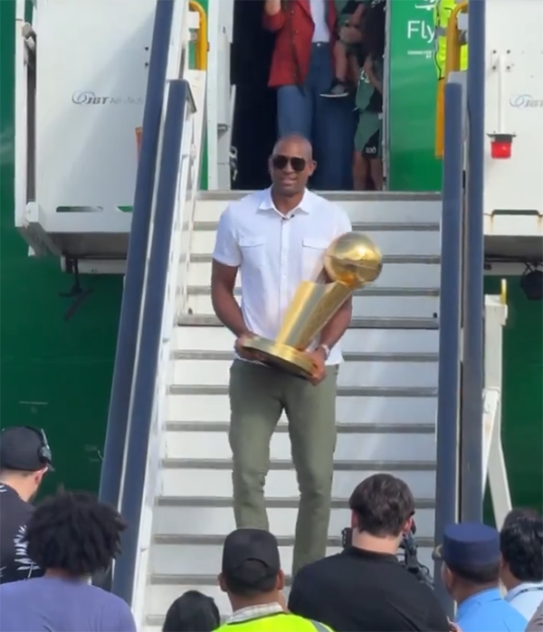 你的位置: 24直播网 篮球直播 NBA 霍福德抱总冠军奖杯荣归故里,绿军主帅相伴同行