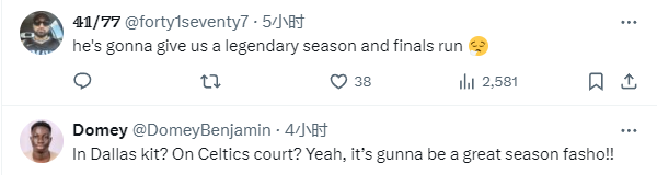 欧文更换的社媒头像照片是今年总决赛欧文在独行侠客场对阵凯尔特人的赛场照,为何欧文要换成这样的头像?独行侠媒体表示:复仇赛季就要来了;美球迷则表示:他将会为我们带来一个传奇的赛季和总决赛,穿着独行侠球衣站在凯尔特人球场上?他将打出一个伟大的赛季!!