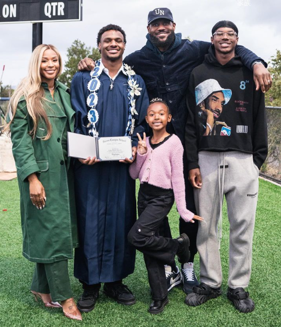 现在詹姆斯39岁,萨瓦娜38岁,他们从高中相识相恋并且最终成为夫妻,他们已经育有三个孩子——大儿子布朗尼已经通过选秀进入NBA,与詹姆斯同队为湖人效力;二儿子布莱斯正在上高中,也在篮球方面展现天赋;朱莉则是擅长打排球。