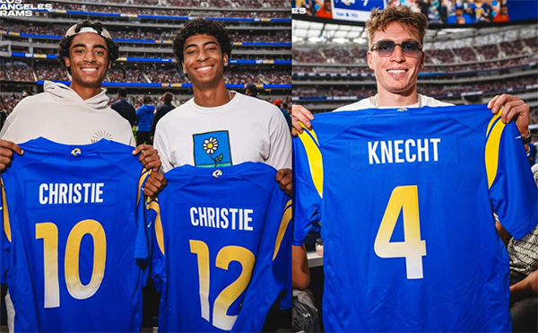 湖人球员马克斯-克里斯蒂和多尔顿-克内克特以及快船球员卡梅伦-克里斯蒂到场观战公羊队比赛,并且获赠公羊队球衣。