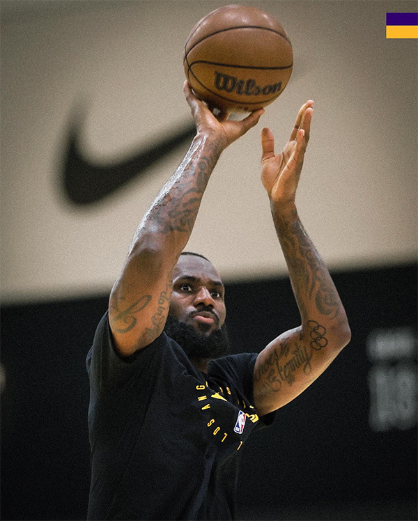 目前湖人众将已经回到球馆中积极备战新赛季,今日湖人官方晒出詹姆斯的最新训练照,配文写道:全新的纹身。