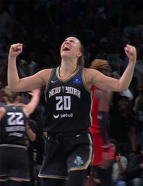 24直播网讯 北京时间9月25日,WNBA季后赛首轮G2,纽约自由人91-82击败亚特兰大梦想,大比分2-0横扫晋级半决赛,被称为“女库里”的约内斯库大爆发,全场出战39分钟,23投12中、三分11中5、罚球7中7独砍36分9助攻3抢断,正负值+11,带队晋级半决赛。