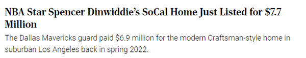 丁威迪出售洛杉矶豪宅 770万转手后赴独行侠冲冠