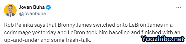 今日接受采访时,佩林卡透露,在昨天的一场队内对抗赛中,布朗尼换防到勒布朗,勒布朗从底线过掉他,拉杆打板上篮得分,然后说了一些垃圾话。佩总直言:他们双方的言语交流可能是最具挑战性的。