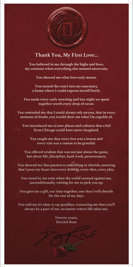 罗斯还表示:我知道自己在16个赛季里为篮球倾尽全力,所以对这个决定感到很自信……篮球只是我的起点。现在,最重要的是我要全心全意地陪伴我的家人——他们值得拥有这一切。