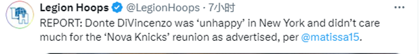 据NBA记者Mat Issa报道,迪文琴佐在尼克斯过得不开心,并且不太在意尼克斯维拉诺瓦大学队友重聚。