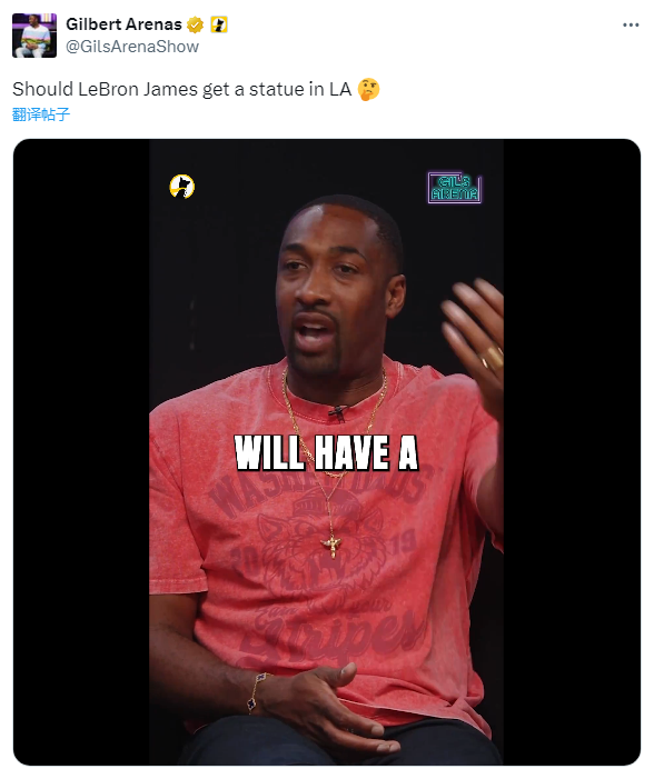 在自己的播客节目中,谈及湖人是否该为詹姆斯立雕像时,阿里纳斯表示:勒布朗-詹姆斯将会在斯台普斯(前湖人主场)有一座雕像,因为你不会不让NBA历史头号得分手出现在那里!他有很大的可能性会得到三座雕像,克利夫兰无论如何都会给他一个,他100%肯定会有两个,因为洛杉矶不可能没有他的名字。
