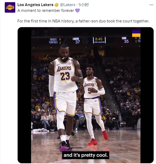 虽然布朗尼的表现很差,但詹姆斯父子同台仍值得被记住,湖人官方发文感慨詹姆斯父子同台时刻,配文写道:一个值得被永远铭记的时刻,这是NBA历史上第一次父子同台竞技。