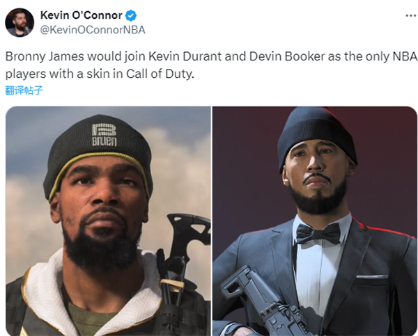 名记凯文-奥康纳发推表示布朗尼将和杜兰特、布克成为仅有的在《使命召唤》中拥有皮肤的 NBA 球员。