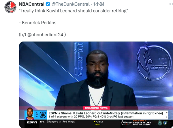 对于小卡的情况,名嘴帕金斯表示:每个赛季,当谈到小卡的健康时都会出现问题……我真的认为科怀-莱昂纳德应该考虑退役。