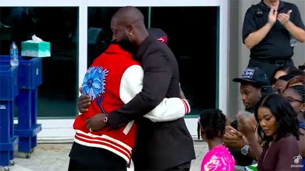 哈斯勒姆第一个上台发言,之后帕特-莱利登台夸赞以及祝贺韦德,韦德的儿子扎伊尔讲话时,韦德动情落泪;