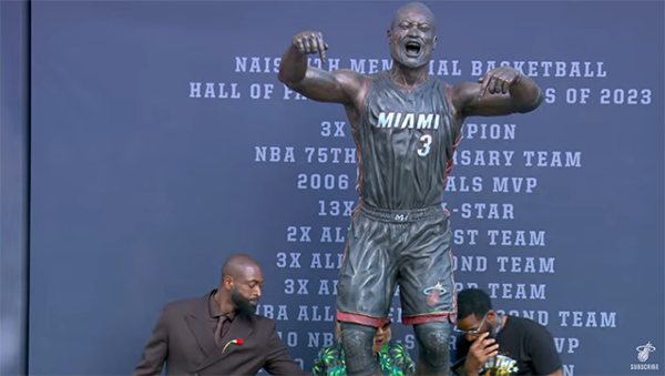 韦德雕像揭幕仪式:经典双手指地造型,传奇闪电侠热泪盈眶