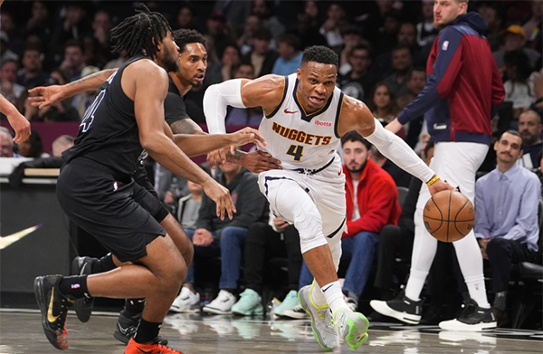 下半场,威少第三节急停中投得分以及干拔命中三分球,末节威少突破上篮,助攻沃特森命中三分,强突造犯规继续罚球得分,追身三分同样一击即中,此时威少怒吼庆祝,威少带领掘金反超比分;威少下场后,约基奇和穆雷带队与篮网僵持拉锯,生死时刻约基奇连续得分把比赛拖进加时。