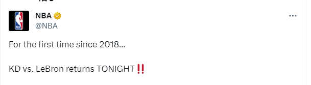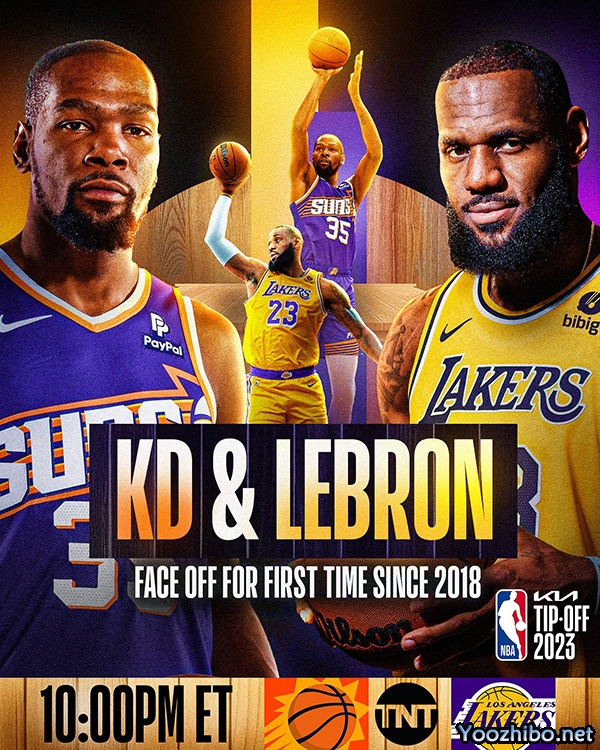 时隔1766天,詹姆斯和杜兰特时隔5年再次交手备受关注,赛前,NBA官方放出海报为本场焦点大战预热,23号大战35号,经典的大小王对决来了。
