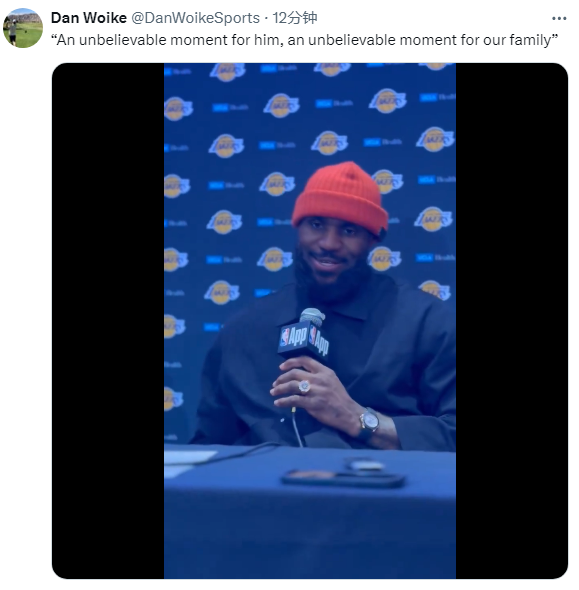 詹姆斯接受采访时,笑着表示:看到布朗尼在离他长大的地方不远的这个球馆里投进NBA首球,这对他来说是一个难以置信的时刻,对我们家来说也是一个难以置信的时刻。