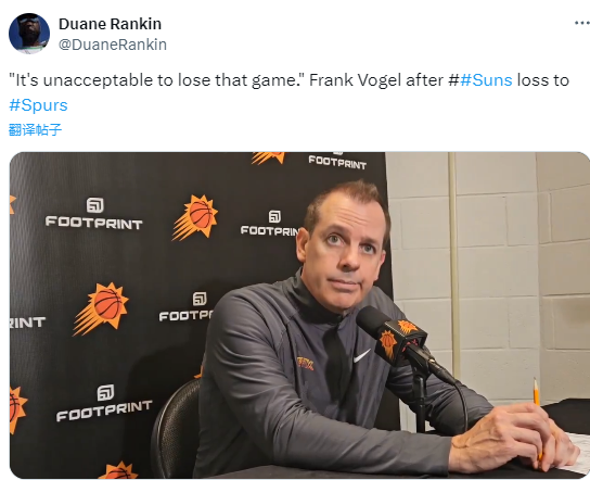 赛后太阳主帅沃格尔表示这场失利是不可接受的。