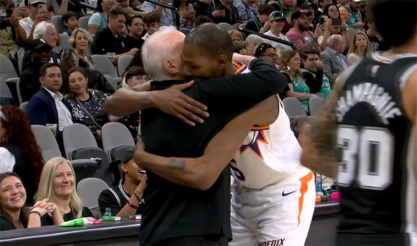 杜兰特全场17投12中拿到29分8篮板6助攻,前三节11中10独砍124分,但末节6中2突然哑火还错失绝杀良机;布克末节10中7独砍18分仍难阻失利,也是错失三分绝杀;太阳惜败,杜布沮丧离场,马刺众将则是兴奋庆祝。