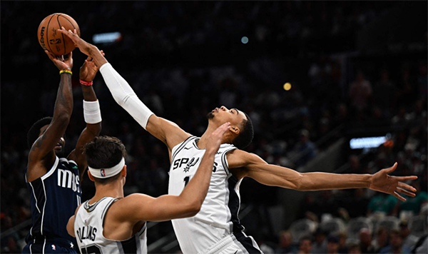 末节文班亚马上场仅仅只打26秒就吃到第5犯,无奈下场十分沮丧,只能坐在替补席观战;7分12秒文班冒险上场并且空接得分,迎着莱夫利再中3分,禁区霸气2+1(罚球不中)引爆全场,;暂停回来,文班迎着格威直接干拔得分,连得9分助马刺紧咬比分,东契奇和欧文关键时刻发力,东契奇三分杀死比赛,最终马刺主场惜败无缘赛季首胜。