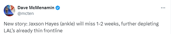 伤病又袭湖人!海斯脚踝扭伤缺阵,后续引援意向及锡安关联受关注