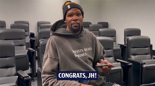 哈登生涯三分命中数超越雷-阿伦升到历史三分榜第二位,史上仅次于库里,快船官方第一时间晒海报祝贺,太阳巨星杜兰特录视频祝贺哈登:伙计,他在联盟的第一记三分(是我传的)。恭喜你,詹姆斯-哈登。你完成了不可思议的成就,你所付出的努力都得到了回报。你以你的打球方式,影响了全世界的很多人。你是一个非常棒的队友,非常棒的朋友。爱你,兄弟。继续磨砺吧。
