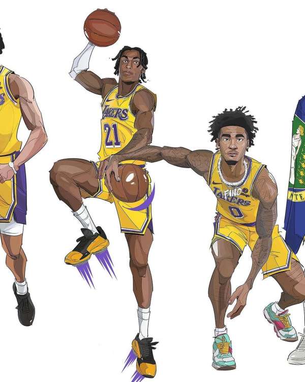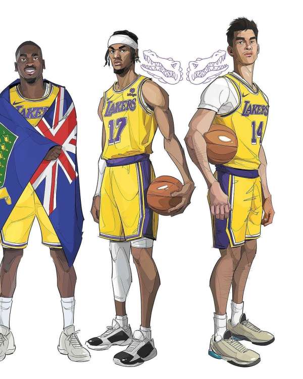 湖人全队漫画版合影:詹皇浓眉C位亮相 八村垒身背武士刀太抢镜