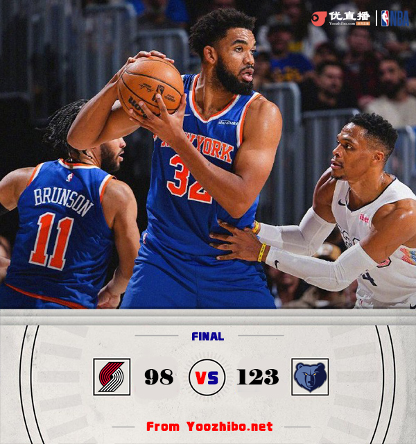 NBA常规赛,掘金主场迎战尼克斯,掘金目前9胜6负西部第5,尼克斯则是9胜7负东部第4。比赛开始,双方上来你来我往迅速进入状态,阿努诺比接连三分命中,布伦森里突外投连砍9分,尼克斯首节就领先到12分,次节唐斯接连3记三分砍下11分,尼克斯瞬间拉开20分以上领先,随后佩恩又里突外投成为替补奇兵,小波特单节15分苦苦支撑,尼克斯超高命中率半场领先到23分。下半场,掘金全民皆兵开始追分,但尼克斯根本挡不住,布伦森单节9助攻,阿努诺比怒轰17分,尼克斯三节轰下113分继续领先26分,末节掘金已经换上替补练兵,威少发力单节爆砍24分,无奈分差过大,尼克斯还是依靠主力保持20分左右领先,最终尼克斯145-118大胜掘金,145分也是本赛季联盟单场最高分。