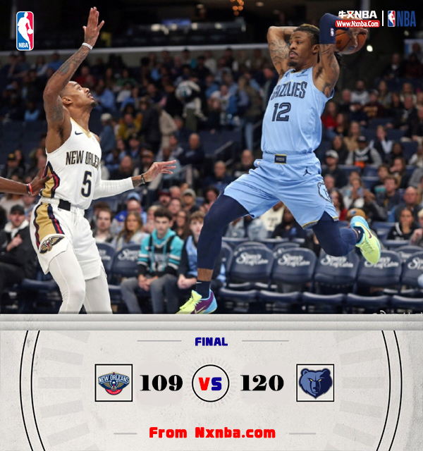 NBA杯,灰熊主场迎战鹈鹕,本场比赛莫兰特复出,英格拉姆因伤缺阵,锡安继续不打。比赛开始,穆雷联手麦科勒姆撑起鹈鹕进攻,莫兰特上来活力十足,接连攻筐回应,随后他又接连送妙传带队建立主动权,首节灰熊领先4分,次节双方命中率短暂下降后展开拉锯战,穆雷有攻有传带队一度反超,但莫兰特连续冲击内线取分,阿尔达马和肯纳德接连3记三分半场稳住11分领先。下半场,墨菲还是没有手感,莫兰特带队守住双位数领先,随后双方展开拉锯战,墨菲压哨三分后鹈鹕还落后10分,末节墨菲助队追分,但莫兰特接连造杀伤取分,斯玛特抛投加三分连得5分稳住局势,灰熊牢牢领先十几分,最终灰熊120-109力克鹈鹕。