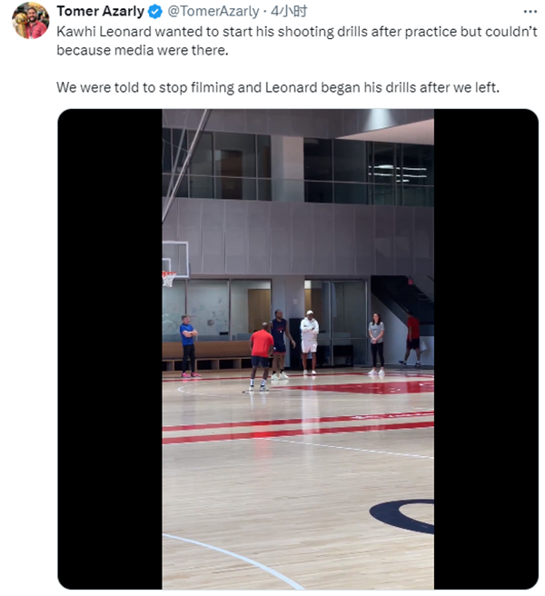 小卡进行训练的一些画面曝光,赤脚跳绳热身,在训练师的陪同下找状态,练习了投篮和罚球,不过据快船记者Azarly报道,小卡本想在球队训练结束之后进行投篮训练,但由于媒体在场,他没能开始(投篮训练);我们被告知停止拍摄,我们离开之后,莱昂纳德才开始了他的训练。