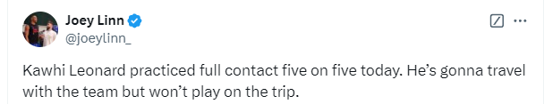 明天快船将在客场大战独行侠,ESPN的赛前出战状态显示,小卡从OUT升级为GTD状态(赛前决定);此前小卡的赛前出战状态一直是OUT,这是赛季首次升级为赛前决定。