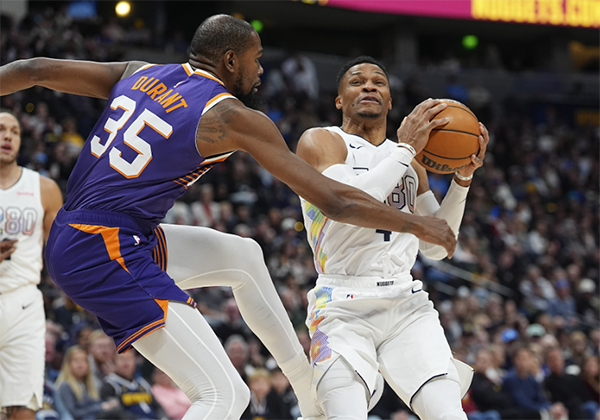 太阳客场90-117惨败掘金27分,杜兰特出战31分钟,15投8中、三分3中2拿到23分9篮板2助攻2抢断1盖帽3失误,两次被威少抢断,正负值-19;太阳第三节28-45溃败,之后太阳一直被按着摩擦,杜兰特提前一节认输太无奈。