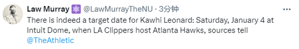 快船迎来重大利好,据快船记者Law Murray报道,小卡目标在1月5日主场打老鹰的比赛中复出,终于迎来赛季首秀!