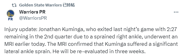 库明加右踝扭伤,勇士如何应对这 3 周 “真空期”?