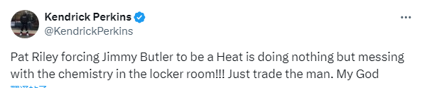 第二节热火一直被掘金压制,巴特勒回到场上后的参与度不高,热火单节31-37又输6分,半场打完落后12分;巴特勒上半场6投3中拿到8分1失误0篮板0助攻0抢断0盖帽;对于巴特勒的表现,名嘴帕金斯发推写道:帕特-莱利强迫巴特勒回到热火,只会扰乱更衣室氛围!!!快把他交易出去吧!