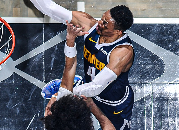 末节掘金轮换阵容继续扩大领先,由于分差太大,约基奇直接三节打卡下班,末节一直坐在替补席观战;掘金赢球后战绩变为26胜16负,稳坐西部第四位;本场比赛,威少9投5中拿到12分5篮板6助攻。
