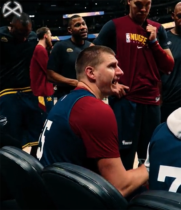 约基奇客场教练十分认真,暂停期间,约基奇拿着战术板为队友讲解战术,不过最终蓝队输给了白队。