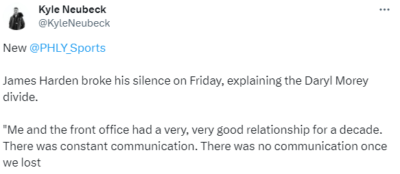 哈登重申与莫雷关系破裂:表态计划出战本赛季 曾希望在76人终老