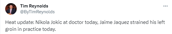 约维奇是在上一场热火与黄蜂比赛中受伤的,替补上场6分钟拿到2分2篮板1助攻1盖帽。