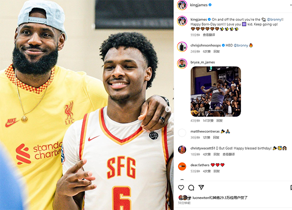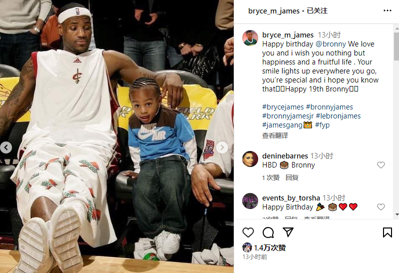 布朗尼19岁生快!詹姆斯全家发声祝贺 老詹:场内外你都是GOAT