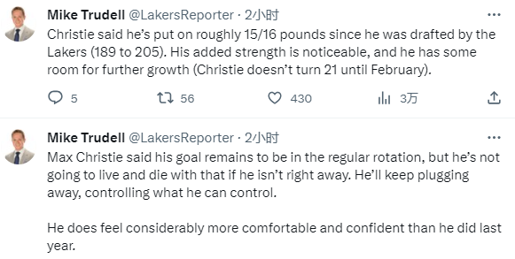 谈到自己在身体方面的变化,克里斯蒂表示:“自从被湖人选中后,我的体重增加了约15-16磅(6.8-7.2公斤)。